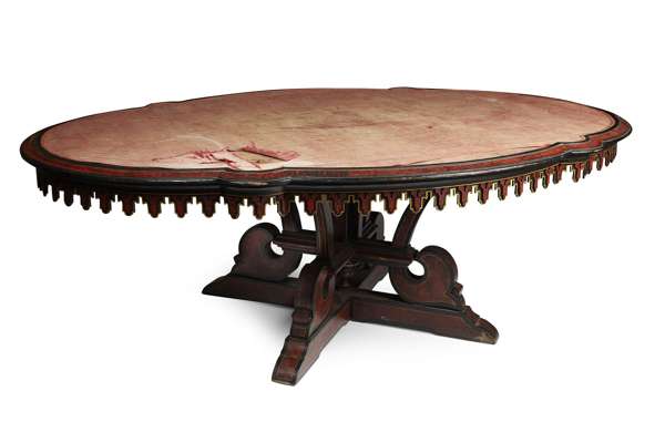 VICTORIAN EBONISED AND FAUX TORTOISESHELL LIBRARY TABLE