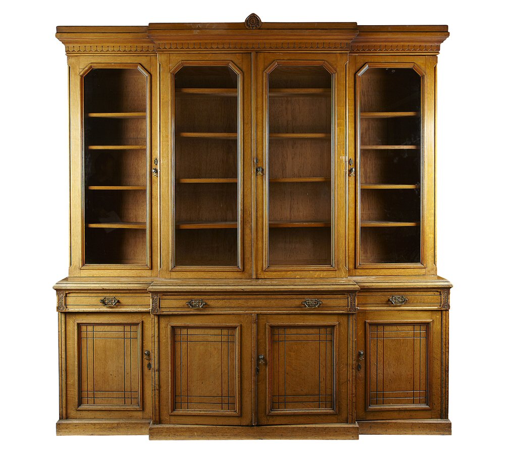 VICTORIAN OAK BREAKFRONT BOOKCASE †