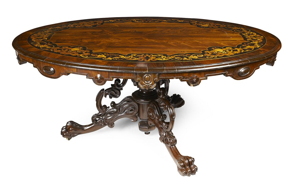 VICTORIAN ROSEWOOD AND INLAID OVAL BREAKFAST TABLE