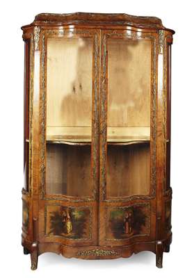 LOUIS XV STYLE KINGWOOD AND VERNIS MARTIN VITRINE CABINET