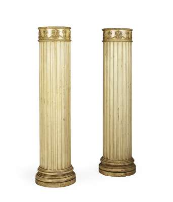 PAIR OF NEOCLASSICAL STYLE CREAM PAINTED PEDESTALS