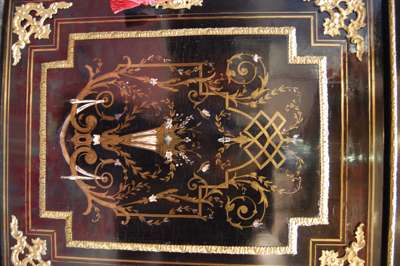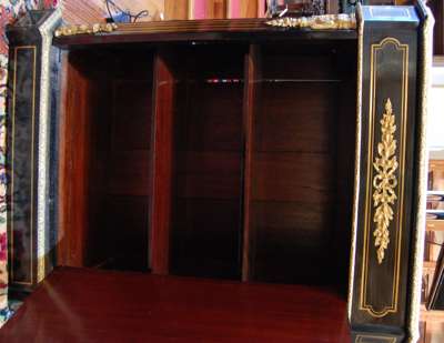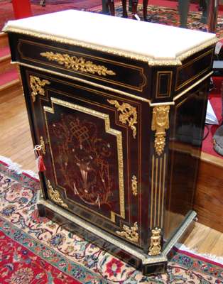 NAPOLEON III STYLE EBONISED BRASS INLAID AND GILT METAL MOUNTED SIDE CABINET