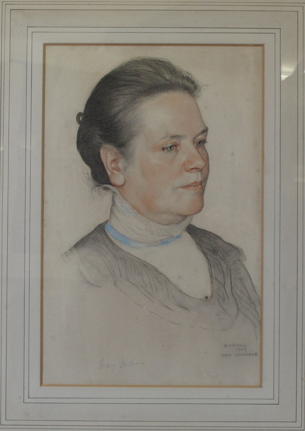 Signed, dated 1909 and inscribed 'Over Courance', crayon on paper