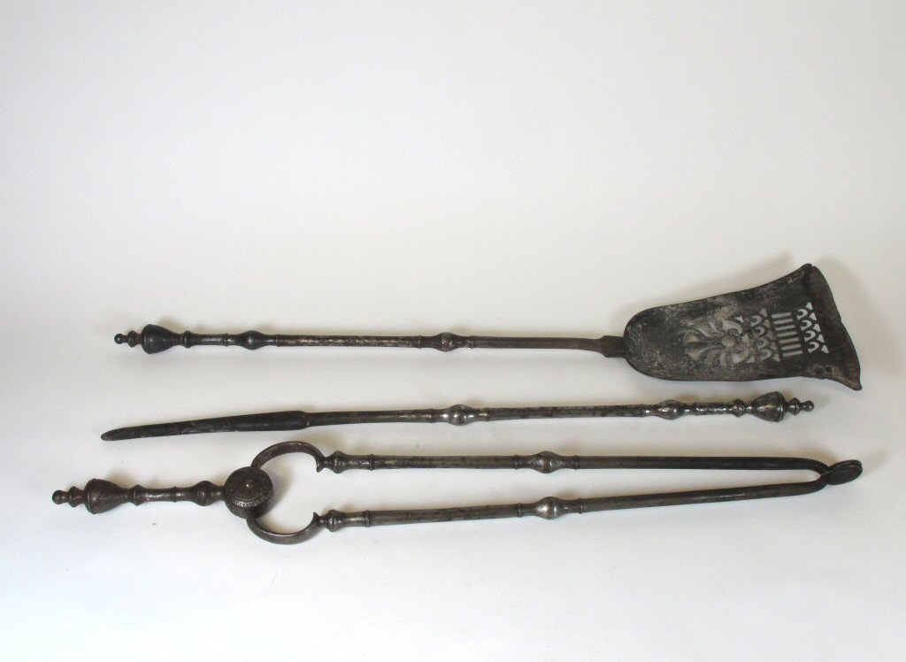 SET OF THREE GEORGE III STEEL FIRE IRONS