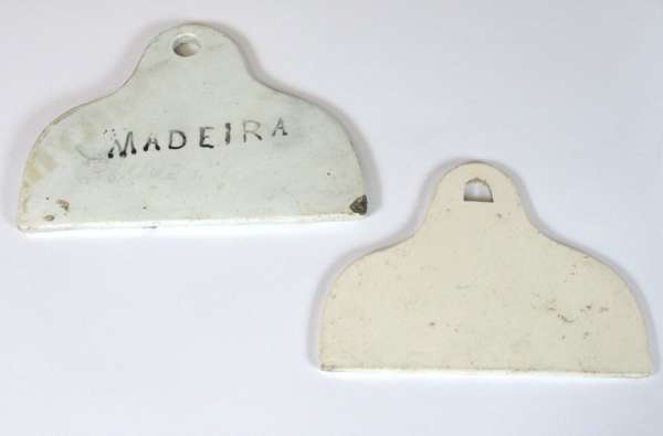 TWO ENGLISH POTTERY CELLAR BIN LABELS