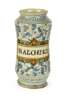 decorated with blue scrolling leaves on a white ground with inscription 'S.Di. Alchengi'