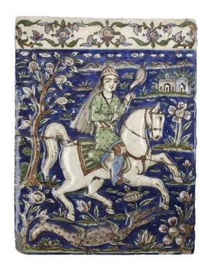 each of rectangular form depicting a huntsman on horseback in a landscape (2)