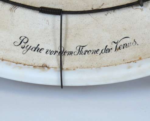 the central rectangular reserve after a painting by Angelica Kaufmann depicting Psyche before Venus in her temple, identified on the reverse, with a gilt decorated panel border, blue beehive mark