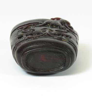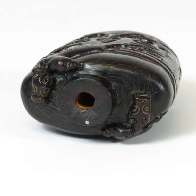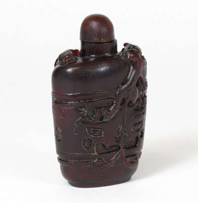 CHINESE CARVED BUFFALO HORN TABLE SNUFF BOTTLE AND COVER