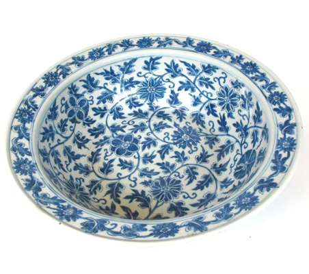 CHINESE BLUE AND WHITE PORCELAIN BASIN