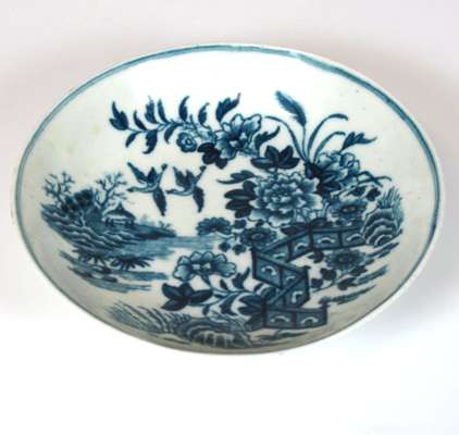 GROUP OF WORCESTER BLUE AND WHITE 'FENCE' PATTERN TEA WARES