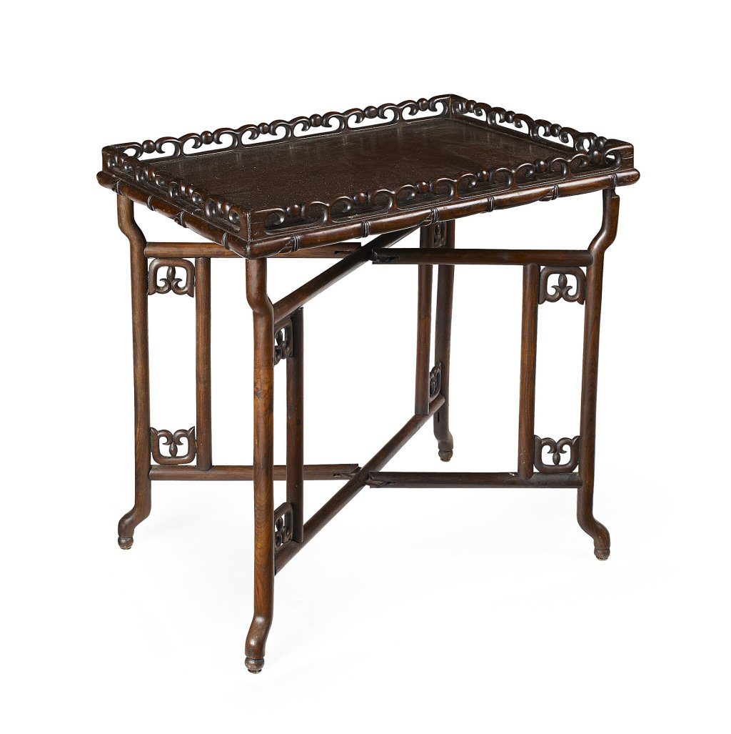 CHINESE CARVED HONG-MU TRAY ON STAND