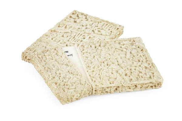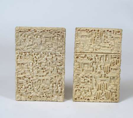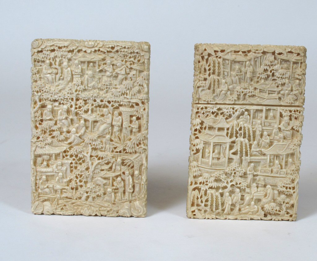 TWO CHINESE CANTON CARVED IVORY CARD CASES