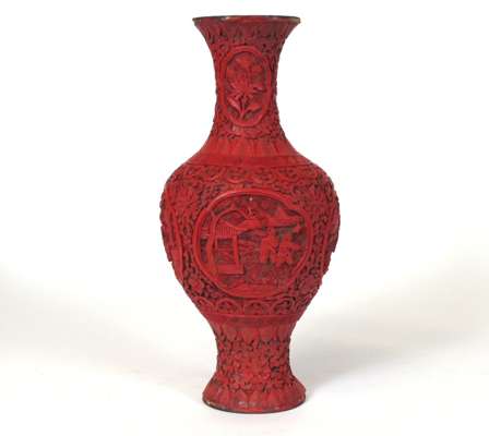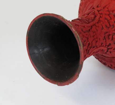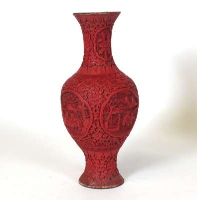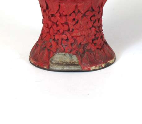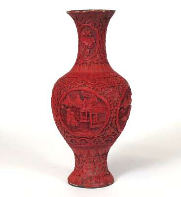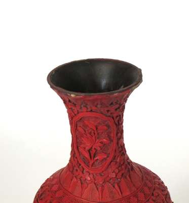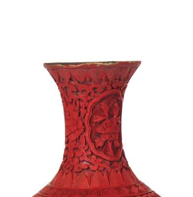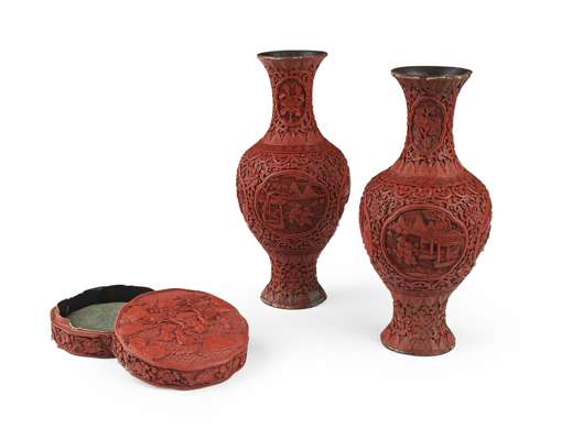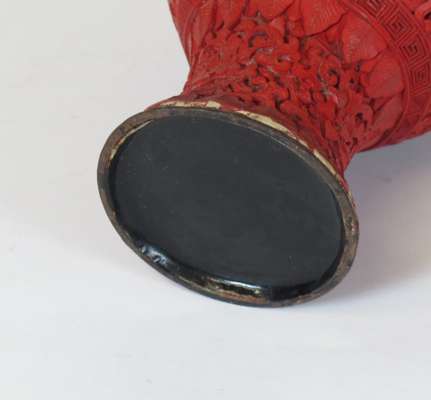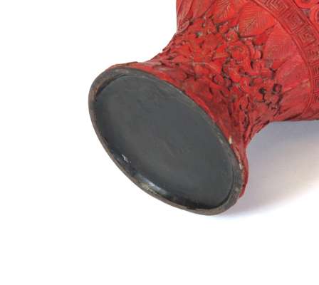 PAIR OF CHINESE CARVED CINNABAR LAQUER VASES