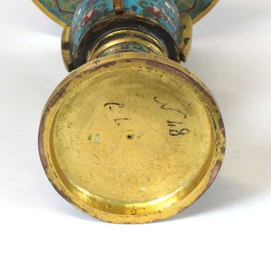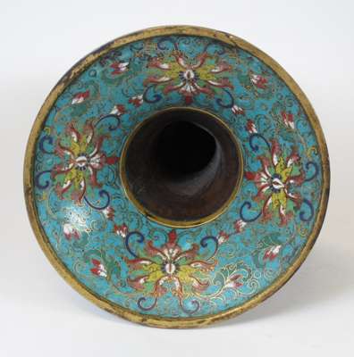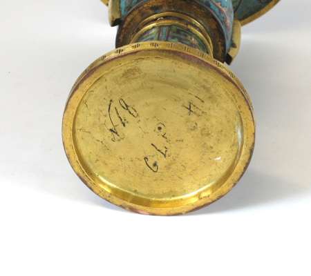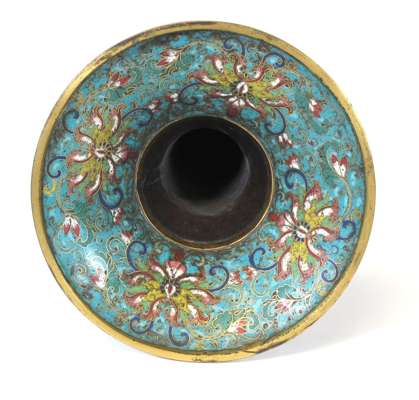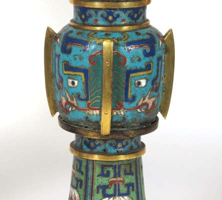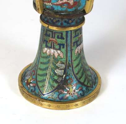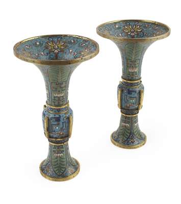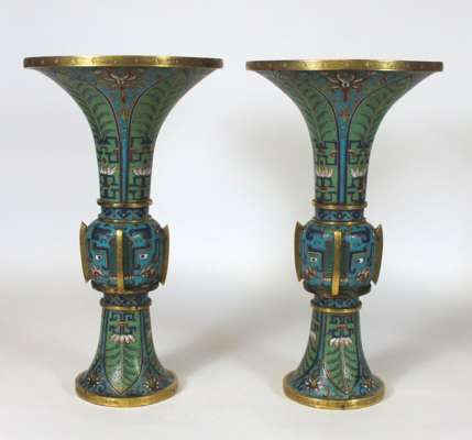 GOOD PAIR OF CHINESE CLOISONNE ENAMEL GU FORM VASES