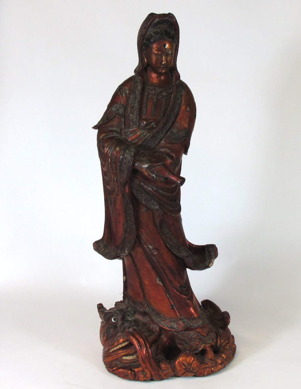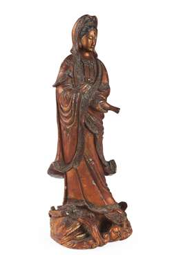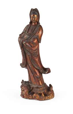 CHINESE CARVED GILTWOOD FIGURE OF GUANYIN