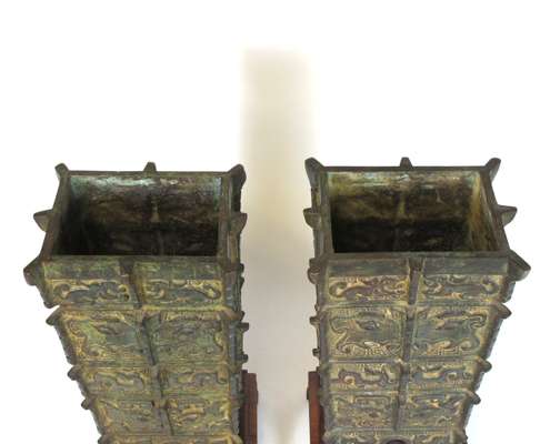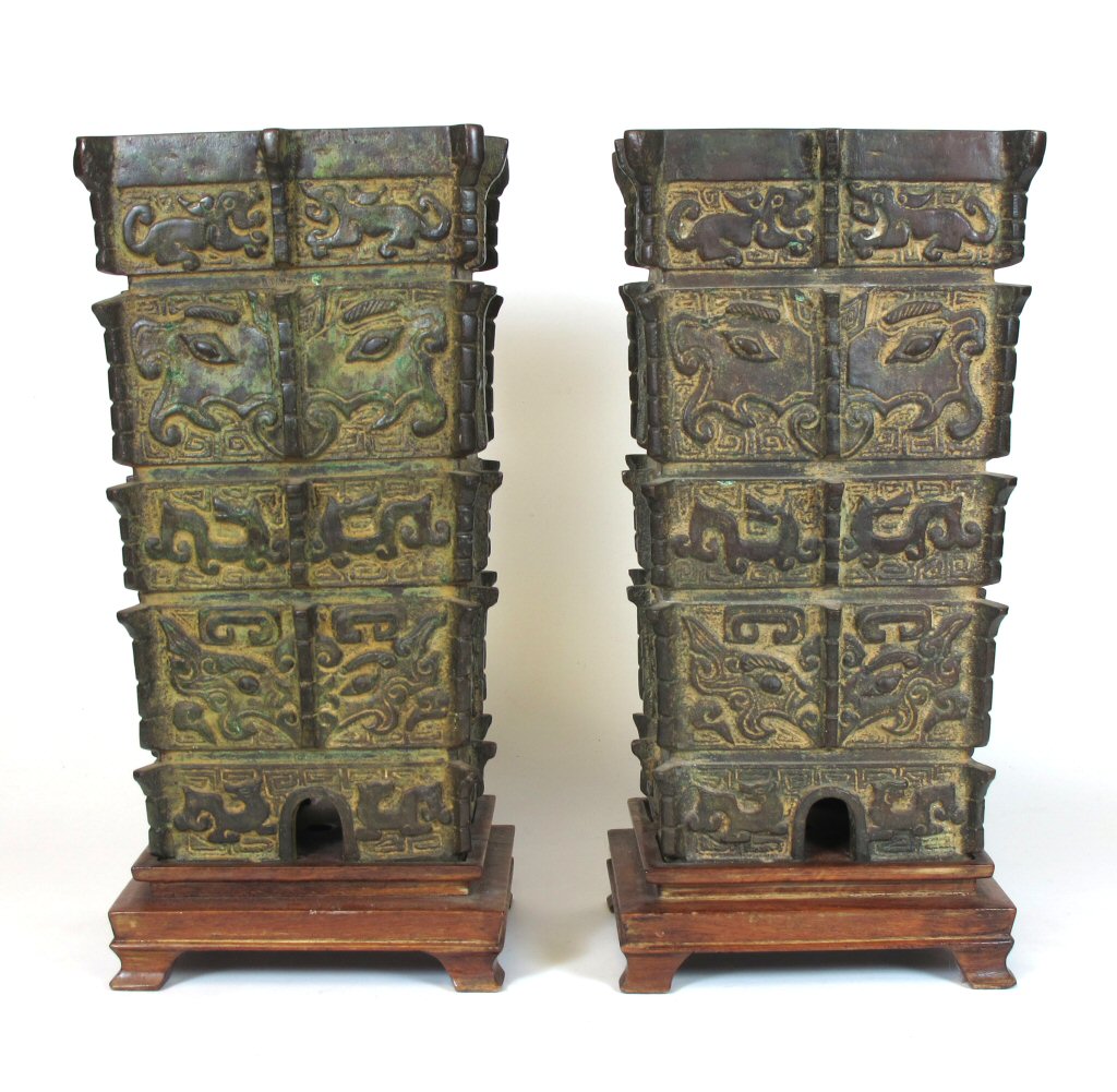 PAIR OF CHINESE ARCHAIC STYLE BRONZE VASES
