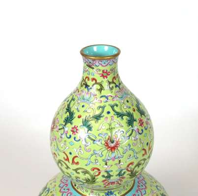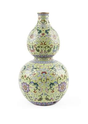 CHINESE FAMILLE JAUNE PORCELAIN DOUBLE GOURD VASE