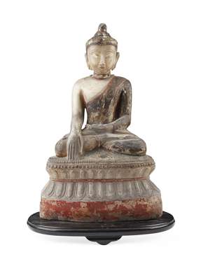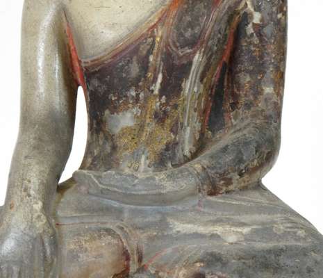 SOUTHEAST ASIAN PAINTED STONE BUDDHA