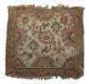 one with cream field with central green cartouche flanked by half palmettes to each side, within ochre stylised vine border between pyramid bands; the other with deep rose field with central small mauve cross flanked by two blue crosses and other foliate motifs, within bue stylised vine border between pyramid bands (2)
