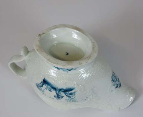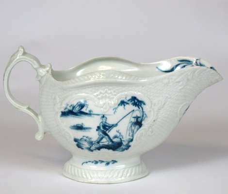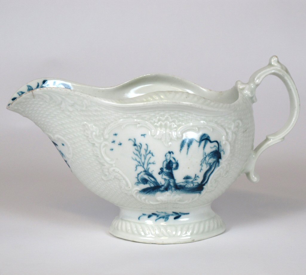 WORCESTER BLUE AND WHITE 'MAN WITH A BOMB' PATTERN SAUCEBOAT