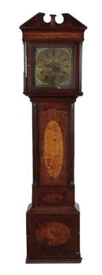 IRISH GEORGE III MAHOGANY AND SATINWOOD LONGCASE CLOCK