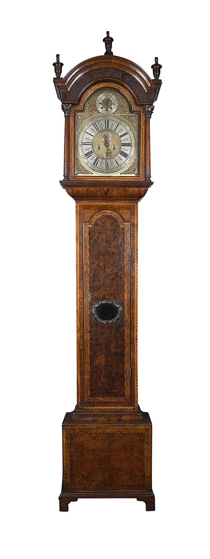 IRISH GEORGE III YEW WOOD MARQUETRY LONGCASE CLOCK