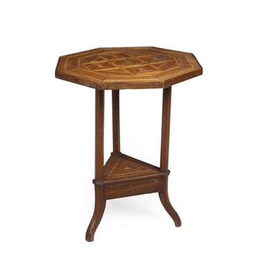 the octagonal top raised on facetted supports united by a triform undertier and ending in outswept legs
