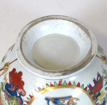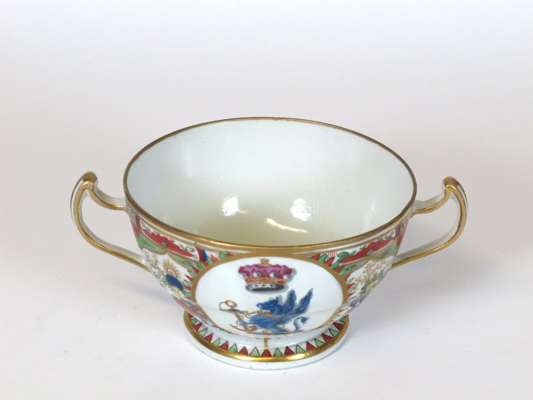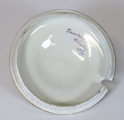 of tapering cylindrical form with griffon and anchor crest beneath a crown, mark 'Chamberlain's Worcester, No. 75', 19cm wide, 12.5cm high; and a small circular plate with similar pattern and crest, 16.5cm wide (2)