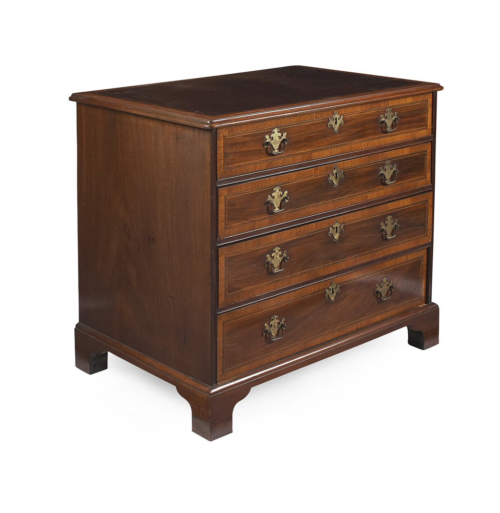 in the George III style, the rectangular top with a moulded edge over four graduated drawers, on bracket feet, stamped 'Edward & Roberts' to top drawer