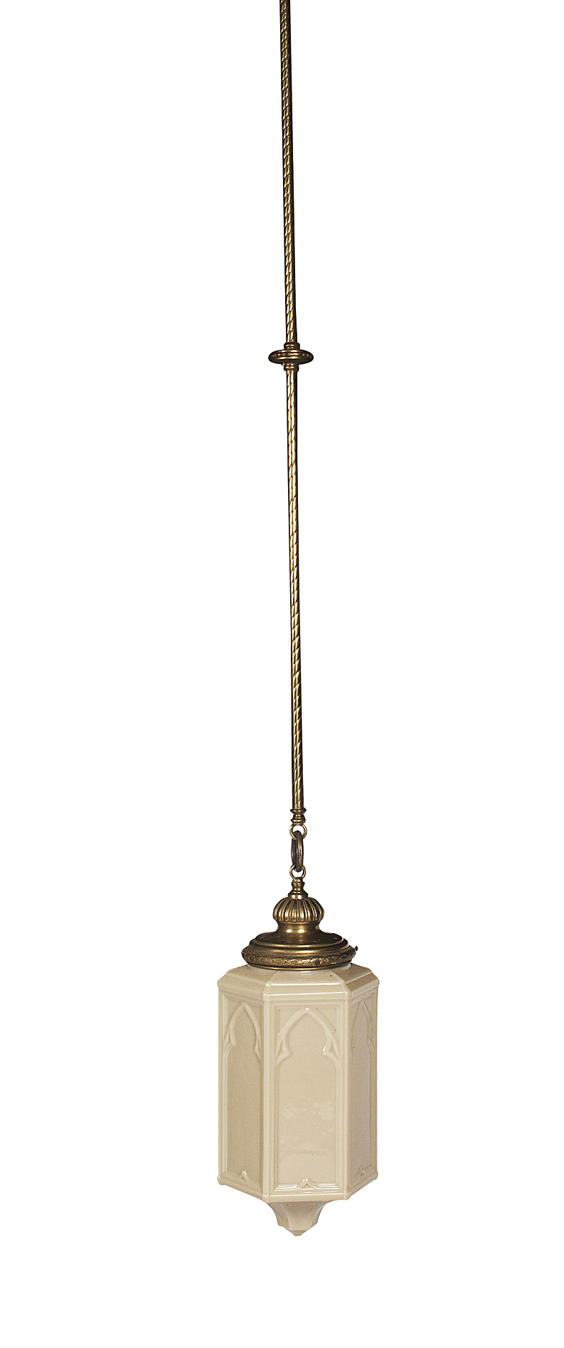 with a rope twist stem and Gothic cream glass hexagonal shade