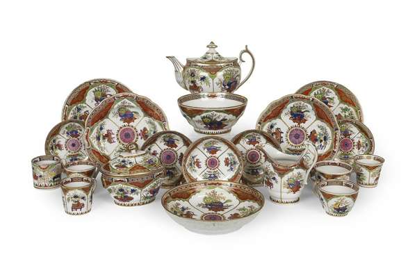 WORCESTER 'DRAGON IN COMPARTMENTS' PATTERN MATCHED PART TEA AND COFFEE SERVICE