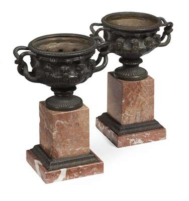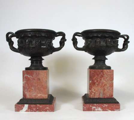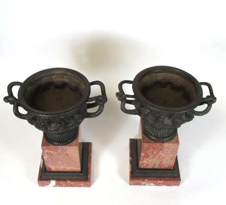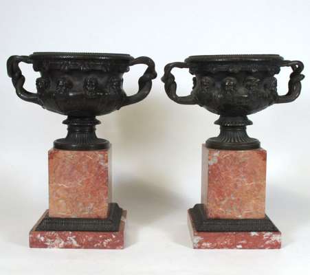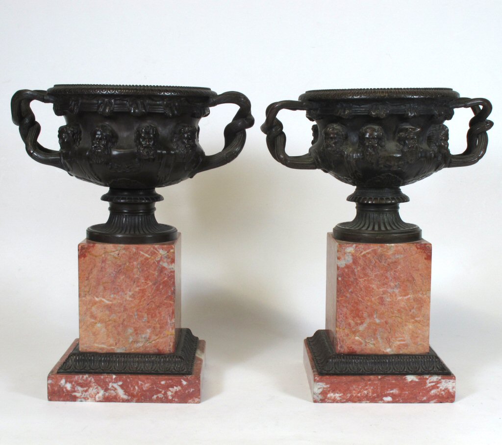 PAIR OF BRONZE AND ROUGE MARBLE WARWICK VASES