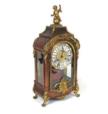 LOUIS XIV BOULLE AND GILT BRONZE MOUNTED TORTOISESHELL CLOCK