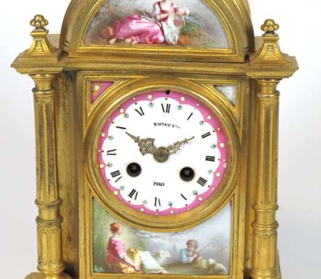 FRENCH PORCELAIN AND GILT METAL MANTEL CLOCK
