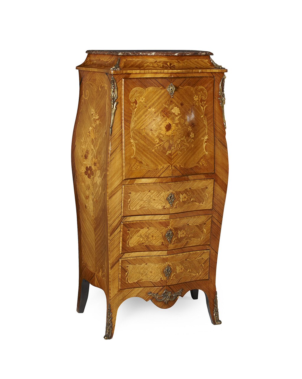 LOUIS XV STYLE KINGWOOD AND MARQUETRY SECRETAIRE A ABBATANT