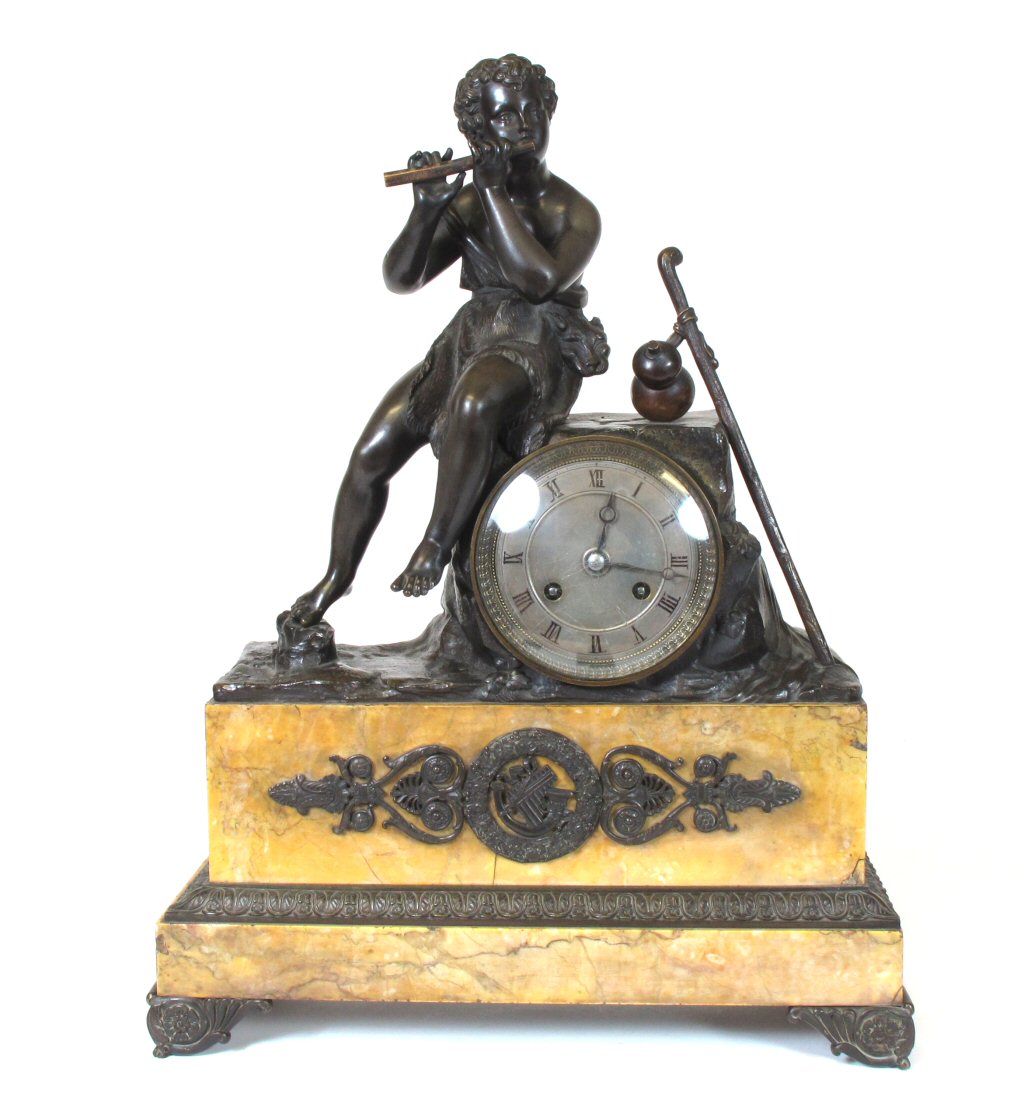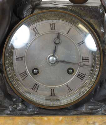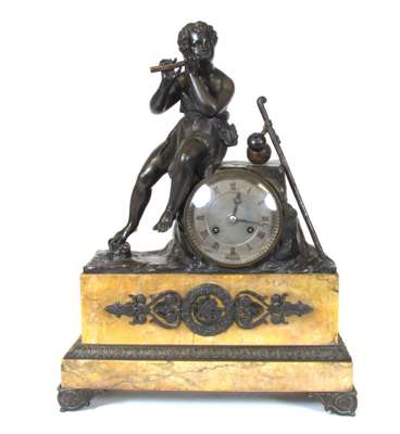 FRENCH BRONZE AND SIENNA MARBLE MANTEL CLOCK