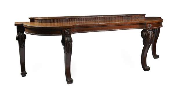 FINE REGENCY MAHOGANY SERPENTINE SERVING TABLE ATTRIBUTED TO WILLIAM TROTTER