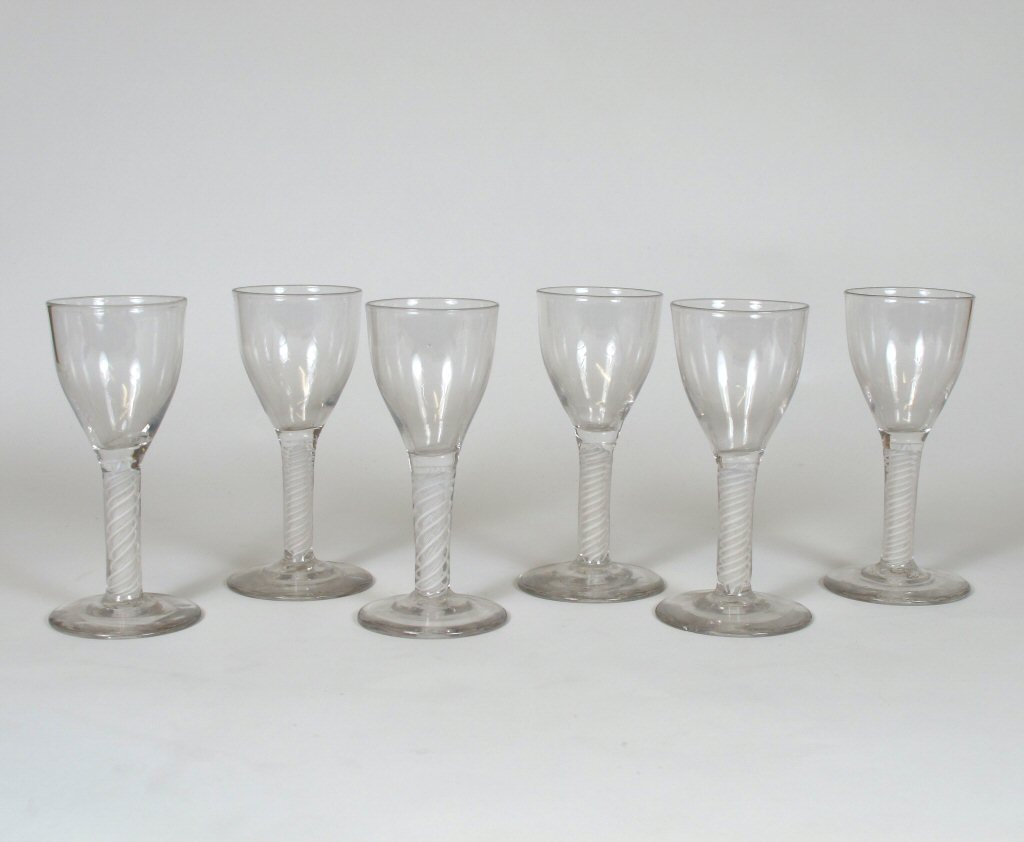 each with a funnel bowl, double airtwist stem and conical foot (6)
