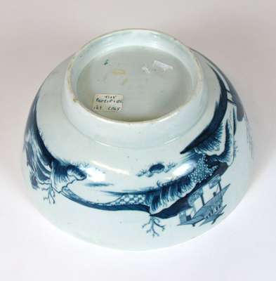 WORCESTER BLUE AND WHITE 'PRECIPICE' PATTERN BOWL