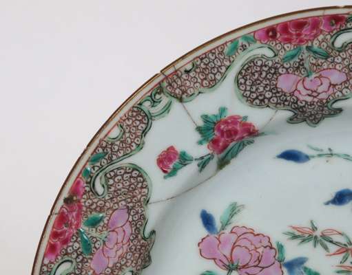 each decorated with peonies and rockwork within a peony and scroll border (10)