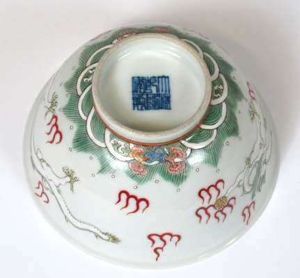 TWO CHINESE POLYCHROME PORCELAIN BOWLS