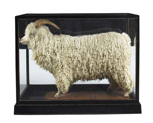 within a glazed ebonised case, the base bearing presentation plaque 'Presented to S.A. Mohair Advisory Board, Port Elizabeth'