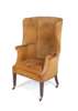GEORGE III MAHOGANY AND UPHOLSTERED WING BACK ARMCHAIR