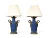 baluster form with applied foliate gilt bronze handles, converted to table lamps