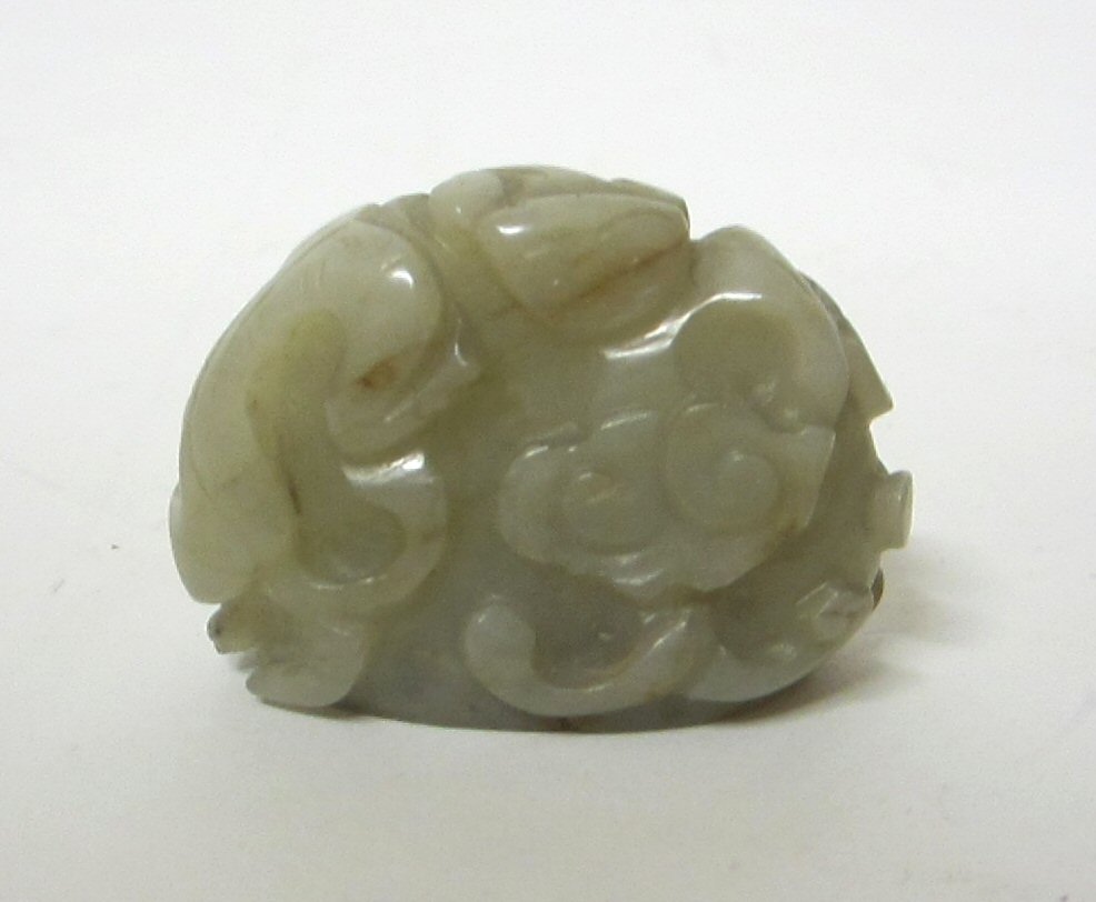 CHINESE WHITE JADE MINIATURE BOULDER PENDANT TOGGLE