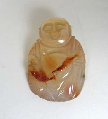 CHINESE AGATE AMULET WITH TWO DRILLED HOLES DEPICTING A HOLY MAN