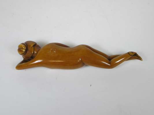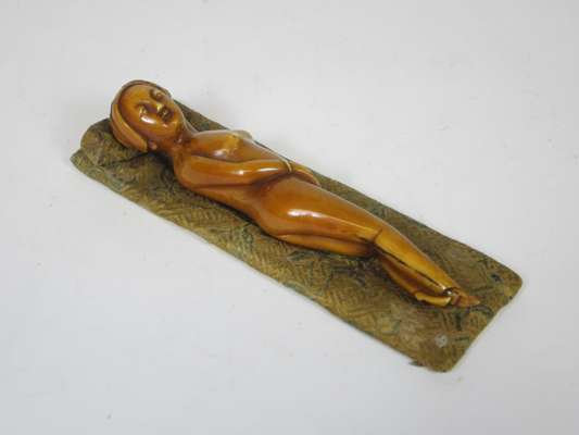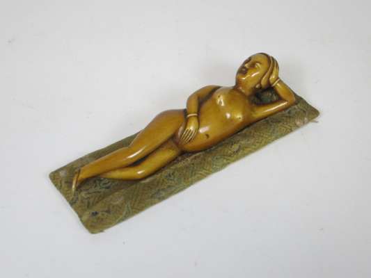 modelled as a recumbent nude female, with a silk cushion bed