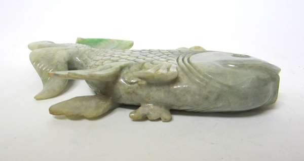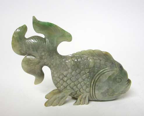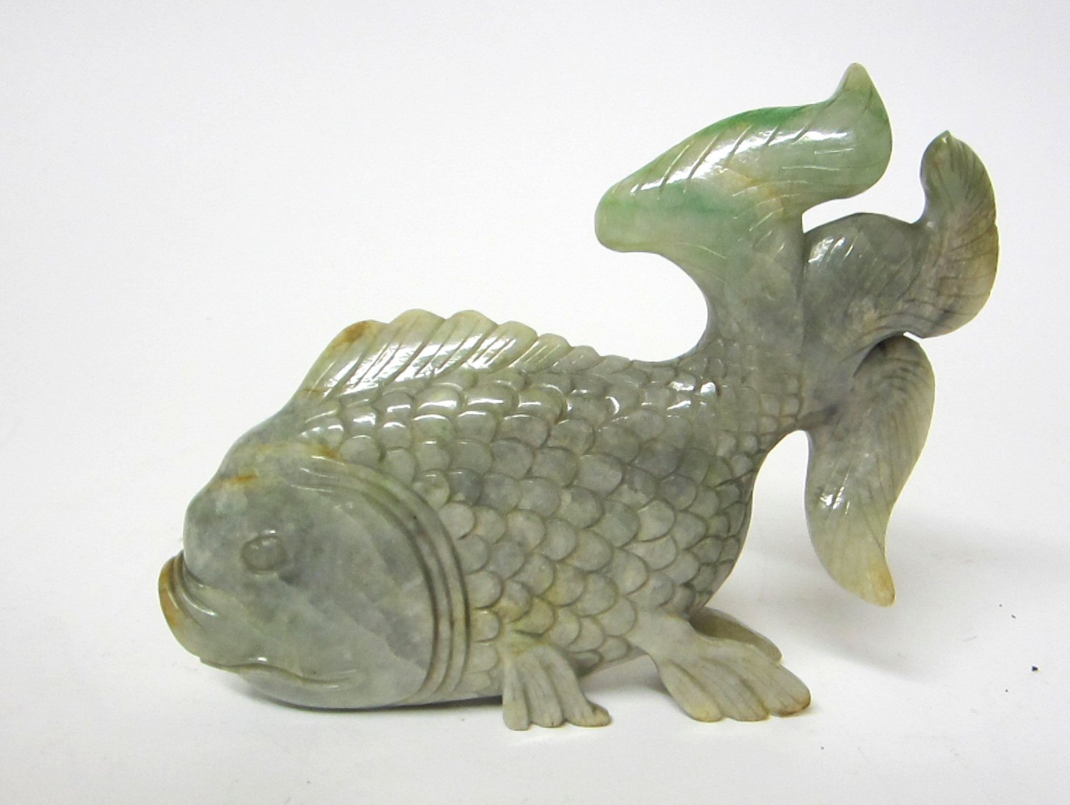 comprising a figure of a lady, 23.5cm high; a figure of a lady modelled with a vase, 16cm high; and a fish, 19cm wide (3)