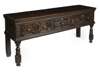 the planked top above three mitre moulded drawers, on block and baluster turned legs